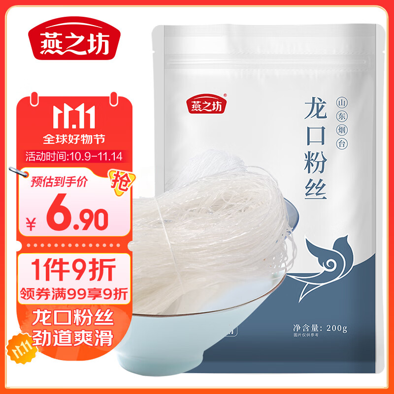 燕之坊 龙口粉丝200g 久煮不糊蒜蓉扇贝粉丝火锅烧烤食材水晶干粉条