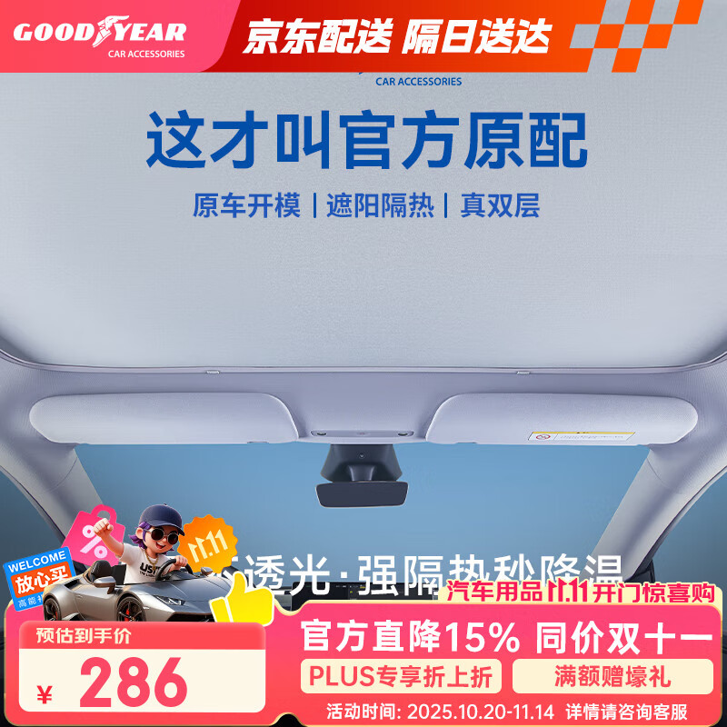 固特异(Goodyear)汽车遮阳帘适用于特斯拉焕新ModelY25款隔热防晒天窗遮阳挡双层