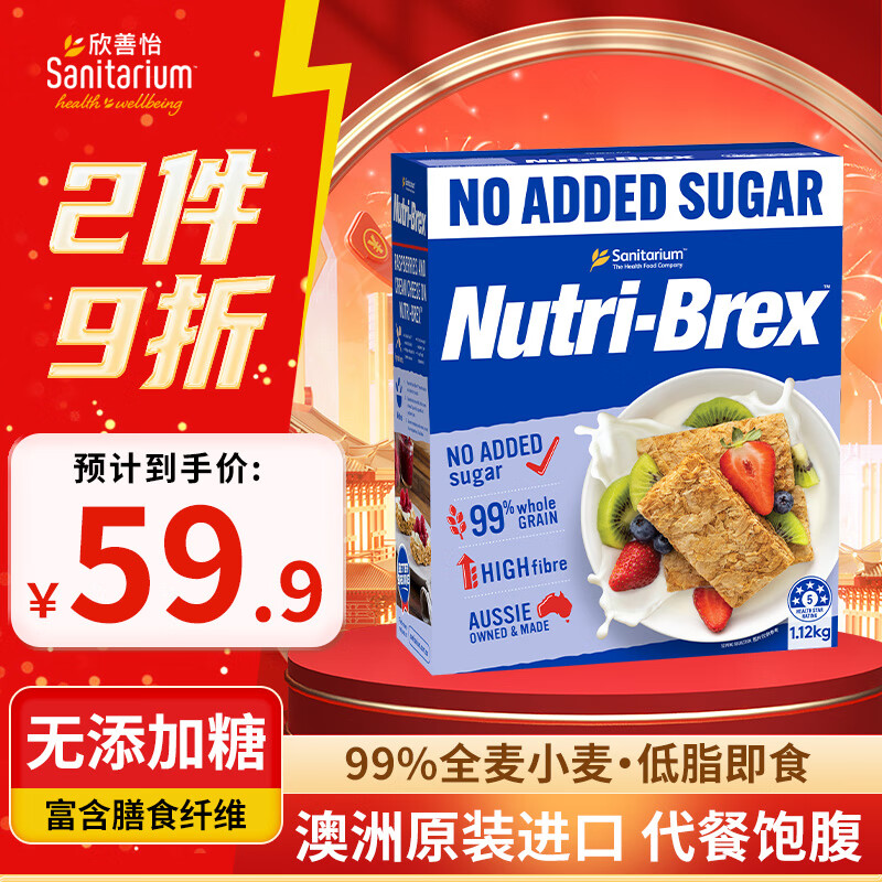 欣善怡澳洲进口谷物无加蔗糖低脂麦片1120g早餐代餐配水果非燕麦全麦脆