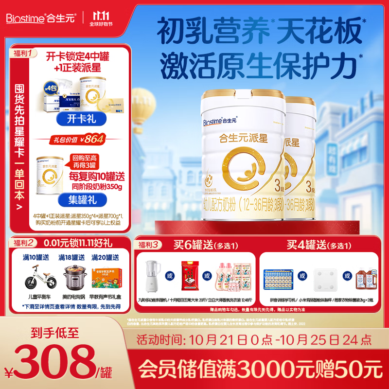 合生元(BIOSTIME)派星 幼儿配方奶粉 3段(12-36个月) 新国标 800克*2罐