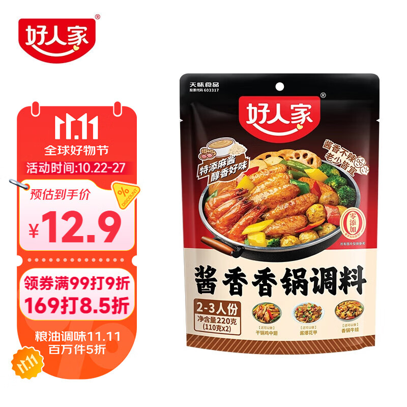 好人家 酱香香锅调料 干锅一料多用调味品220g 2-3人份