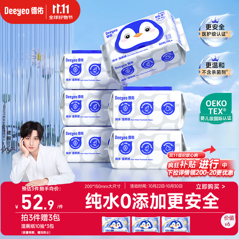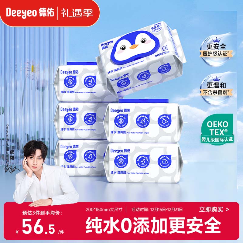 德佑EDI纯水湿厕纸80抽*6包 洁厕湿纸巾厕纸 孕婴皆可用 安全无刺激