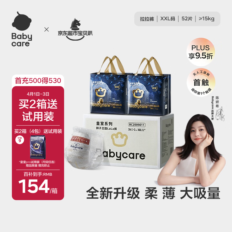babycare皇室狮子王国拉拉裤箱装加大号XXL52片>15kg婴儿尿不湿透气亲肤