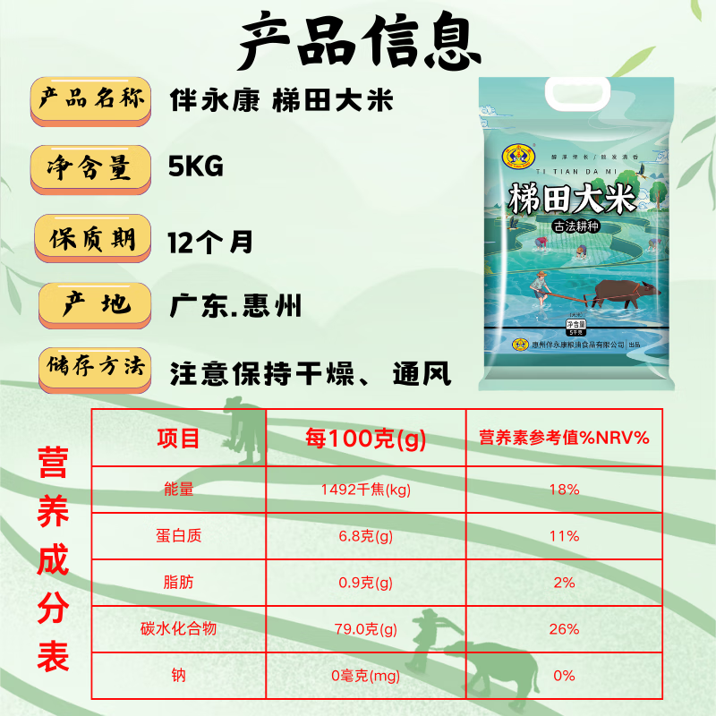 伴永康梯田大米10斤 长粒籼米 南方大米 古法耕种 煲仔饭 当季新米