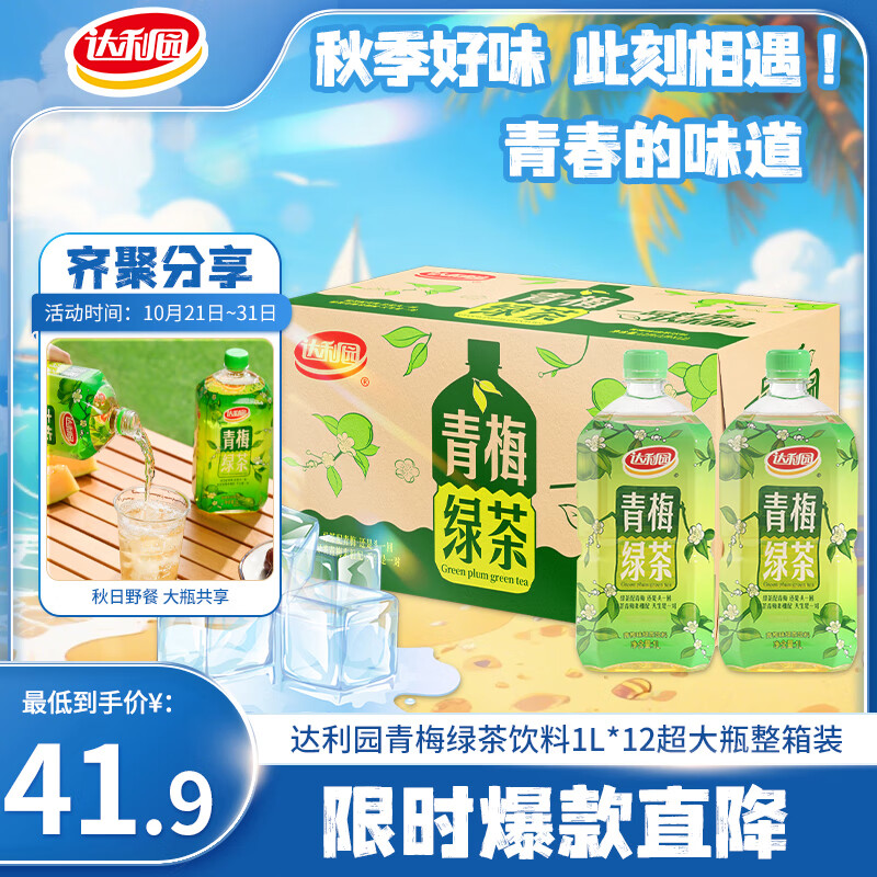 达利园青梅绿茶饮料青梅果汁果味茶饮品1L*12瓶 秋游大瓶装饮料 整箱