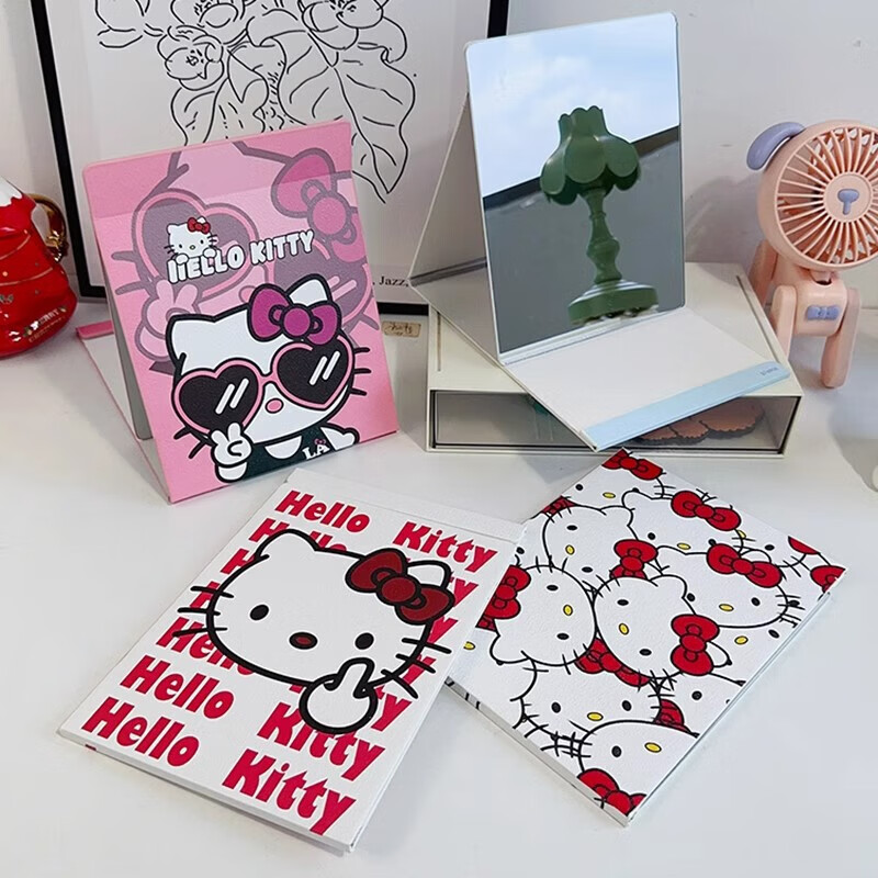 可爱桌面折叠化妆镜子卧室学生宿舍随身便携式台式手拿梳妆镜大号 helloKT猫【全面屏镜子】