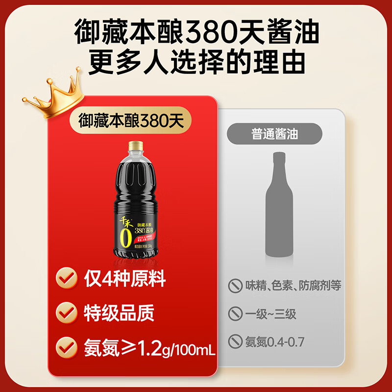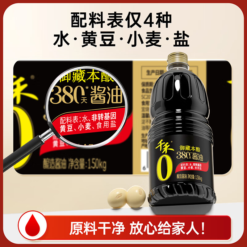 千禾御藏本酿 380天酱油 1.50kg*2【0添加 特级生抽】调料量贩组合装