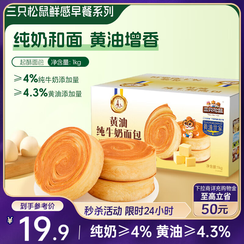 三只松鼠黄油纯牛奶面包1000g 蛋糕早餐食品休闲零食办公室下午茶点心代餐