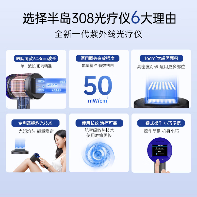 半岛【医院款】308nm紫外光治疗仪白癜风光疗仪准分子照光UV50-PLUS