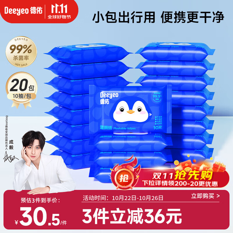 德佑湿厕纸便携装小包10抽20包出行清洁湿巾纸企鹅款加厚清爽不黏腻