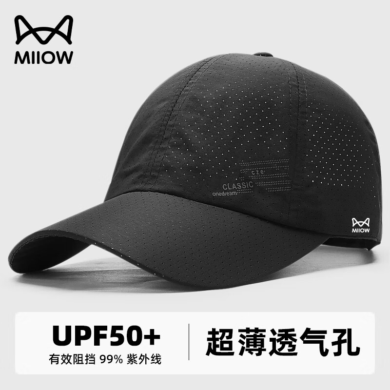 猫人帽子男夏季速干网眼透气帽子男士薄款遮阳帽户外棒球帽 黑色