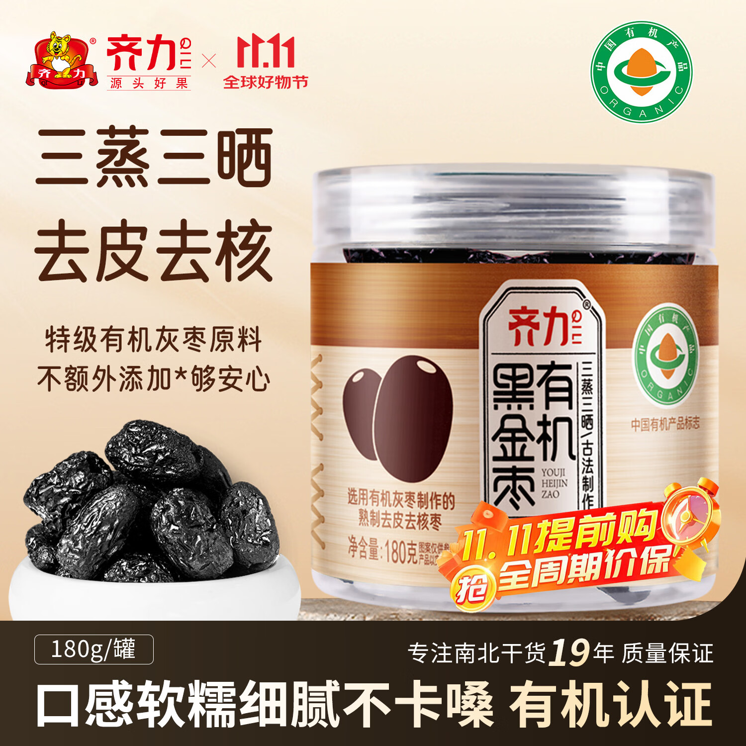 齐力有机黑金枣180g三蒸三晒红枣去皮去核熟制蒸枣 特级红枣蒸制即食