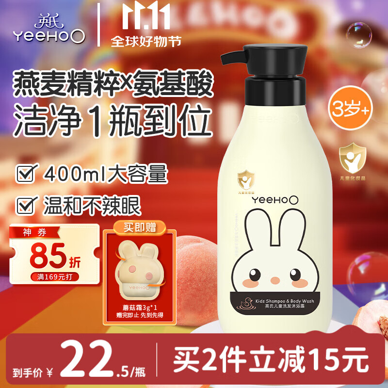 英氏儿童沐浴露 儿童洗发洗澡二合一洗发水沐浴露氨基酸温和保湿400ml
