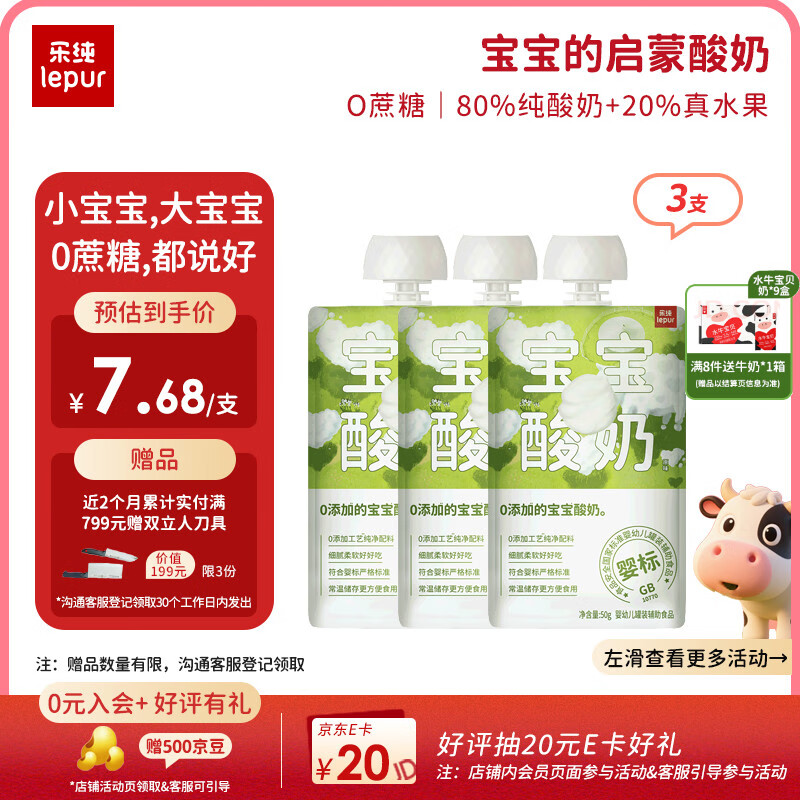 乐纯婴标宝宝酸奶原味50g*3支 常温辅食0添加0蔗糖儿童零食(6个月+)