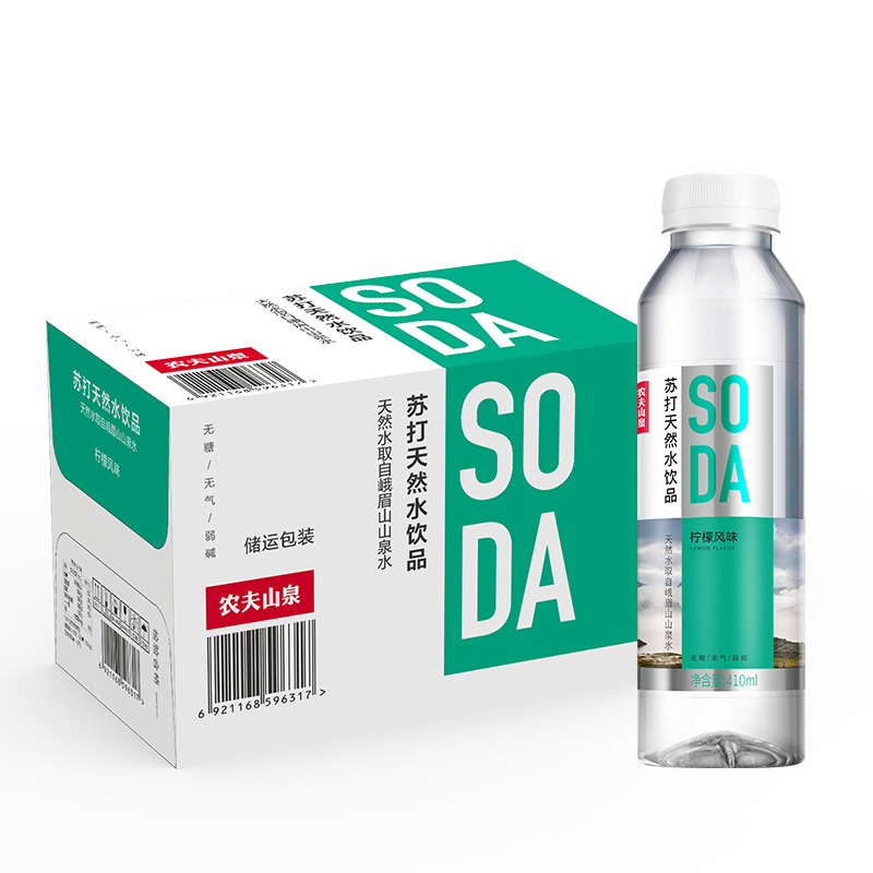 农夫山泉 苏打水饮料无糖 柠檬味 410ml*15瓶 整箱装