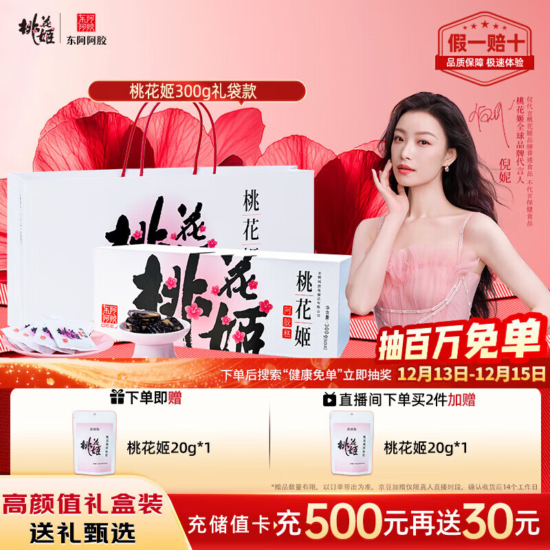 东阿阿胶桃花姬阿胶糕300g礼袋款即食阿胶糕礼盒装送礼送长辈见家长