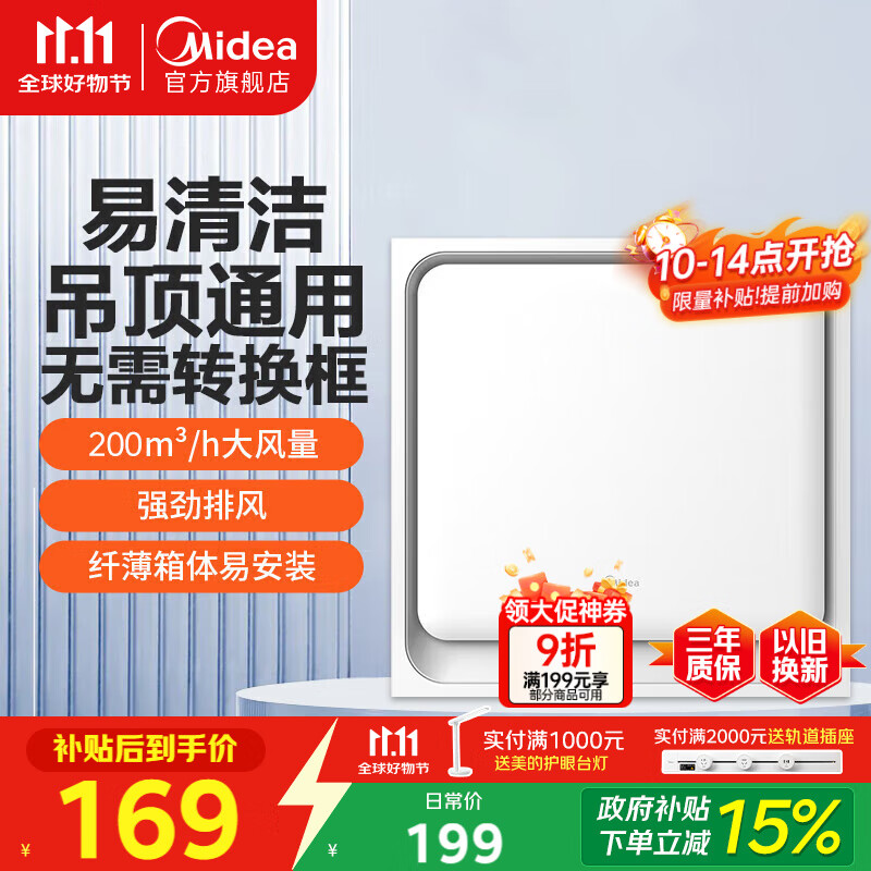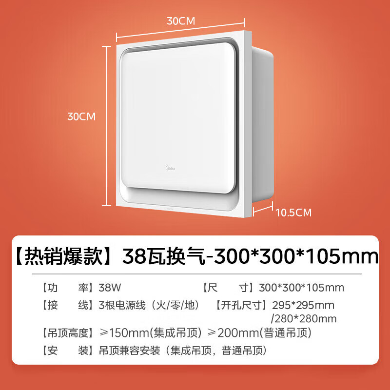 美的(Midea)【顶排】排气扇换气扇排风扇厨房卫生间集成吊顶铝扣板管道扇