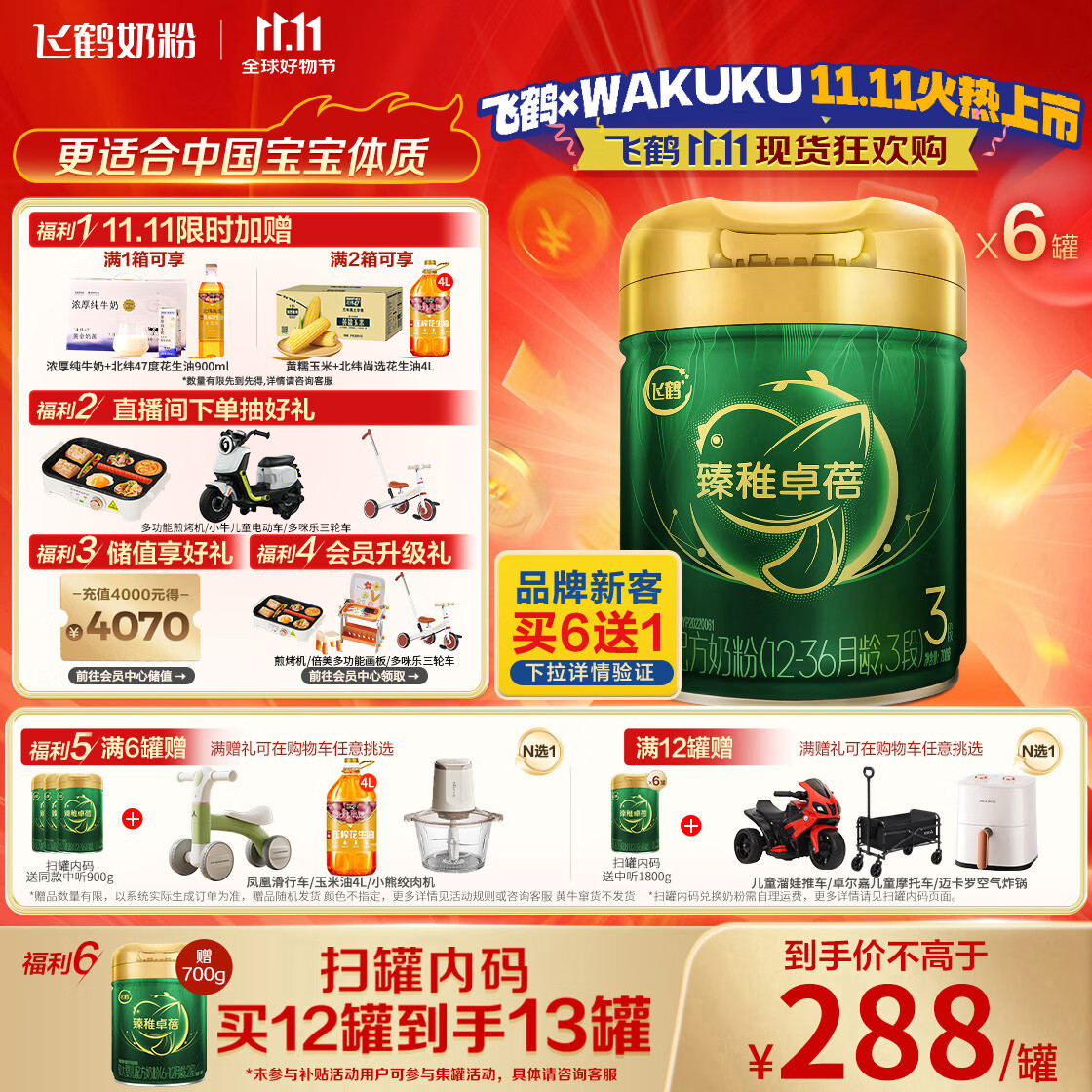 飞鹤臻稚卓蓓有机 幼儿配方奶粉3段(1-3岁)700g*6 乳铁蛋白 育儿补贴