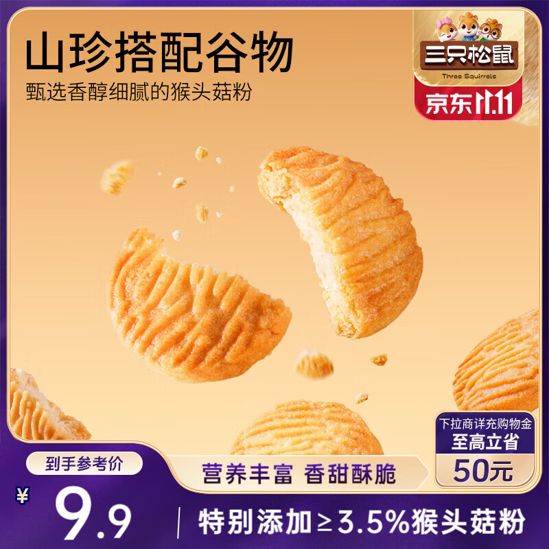 三只松鼠猴头菇小圆饼500g箱装 早餐儿童孕妇营养健康零食饼干点心送礼