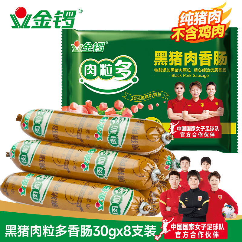 金锣 黑猪肉火腿肠肉粒多30g*8支 休闲零食 出游露营 早餐香肠速食