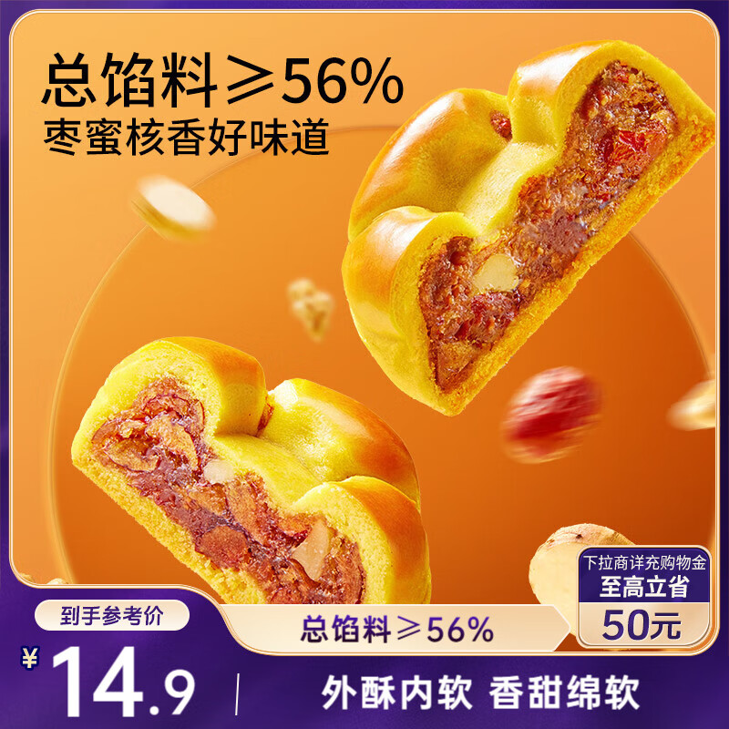 三只松鼠红枣山药核桃饼500g 零食点心早餐办公室下午茶解馋小吃中式糕点