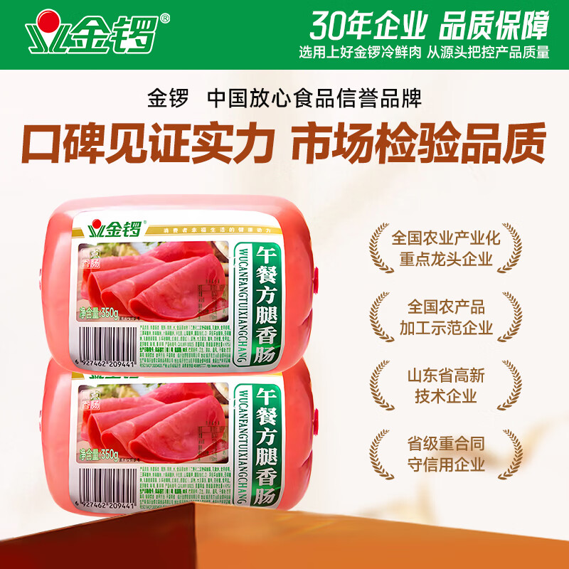 金锣火腿肠速食香肠 午餐肉方腿香肠350g支(方) 休闲零食出游露营