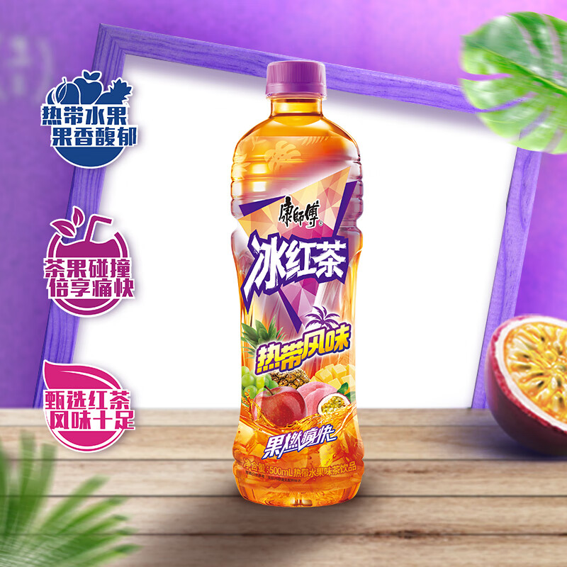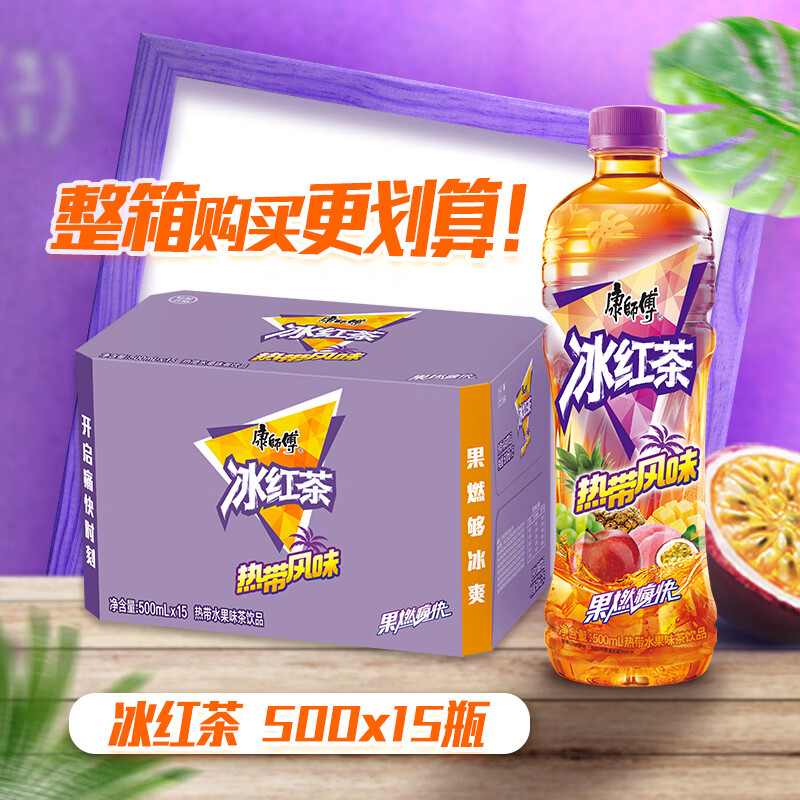 康师傅 热带风味冰红茶 柠檬红茶饮料饮品 量贩装整箱装 500ml*15瓶