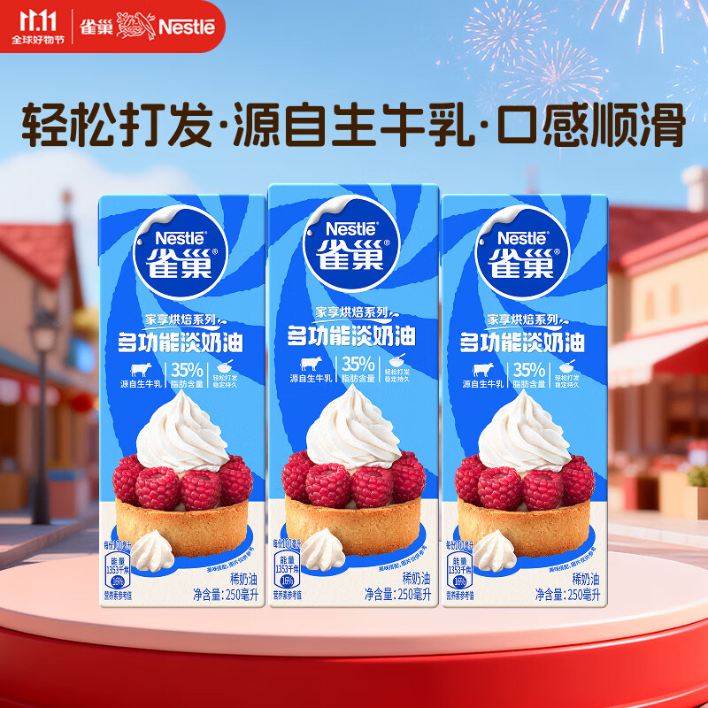雀巢(Nestle)烘焙原料淡奶油 常温存储易打发蛋糕裱花动物奶油250ml*3