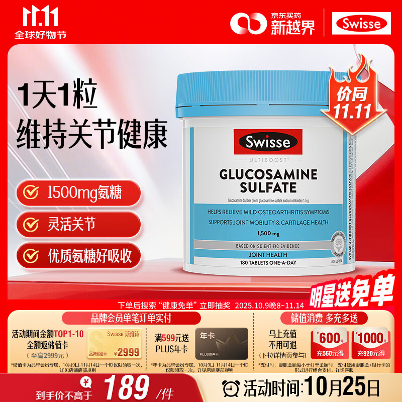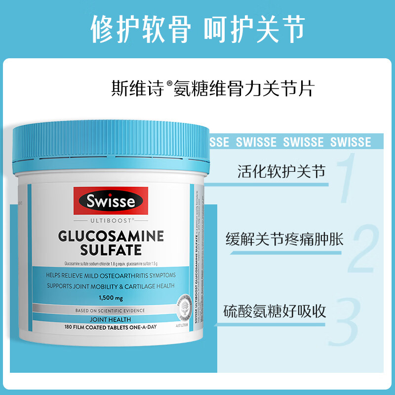 Swisse斯维诗 氨糖维骨力1500mg 成人中老年关节养护 180片/瓶