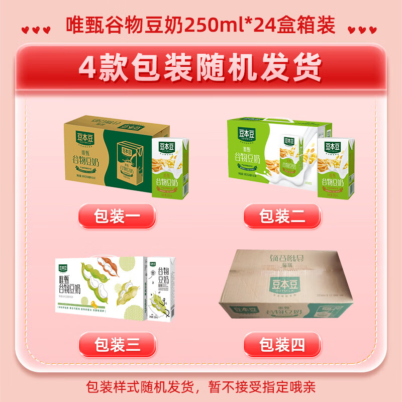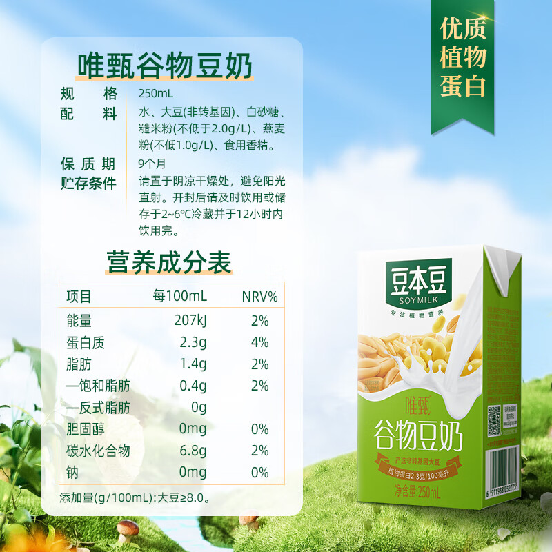 豆本豆唯甄谷物豆奶250ml*24盒2.3g植物蛋白饮料谷物营养学生儿童早餐奶