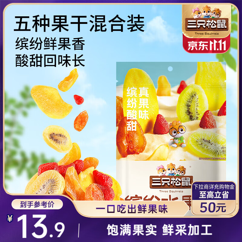 三只松鼠缤纷水果干200g 休闲零食混合什锦果蔬菜干黄桃红薯干