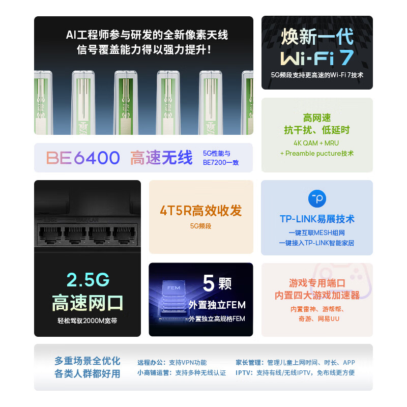 普联(TP-LINK)大道路由器7DR6430 BE6400 5G WiFi7千兆双频家用高速穿墙 2.4G wifi6无线 2.5G网口 游戏加速