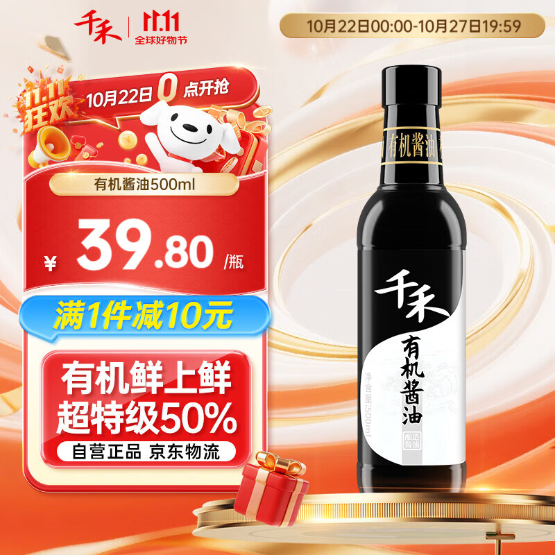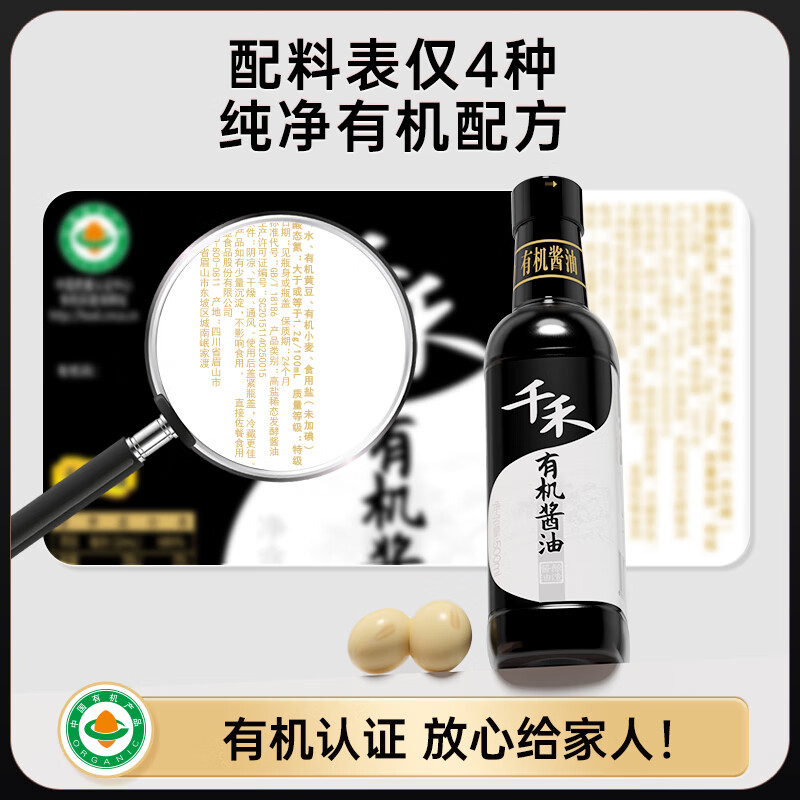 千禾 有机酱油 500mL【有机 特级品质】零添加生抽家用佐餐提鲜