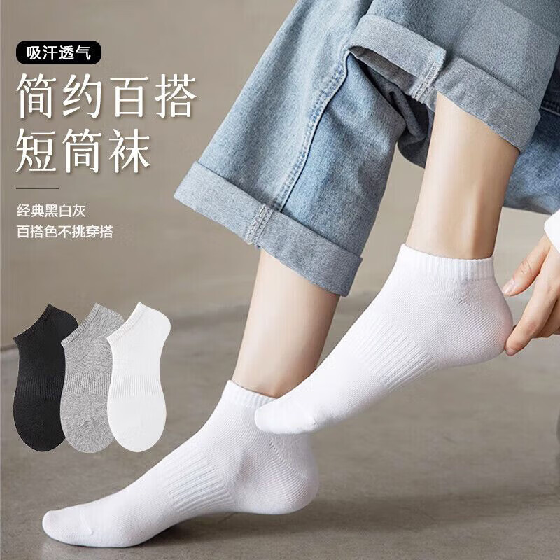 雅鹿袜子男夏季款透气短筒袜束脚防臭袜吸汗抗菌经典纯色运动短袜 雅鹿:【纯色百搭/耐磨耐穿】 均码 【五双/混色】防臭*透气