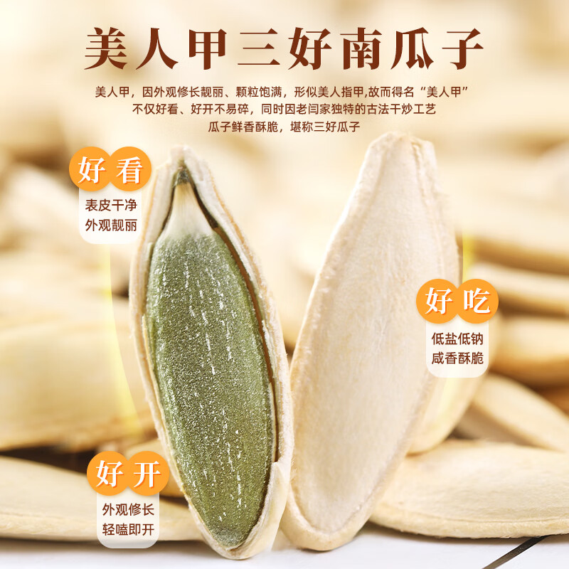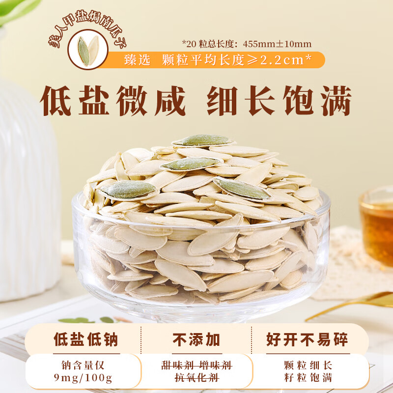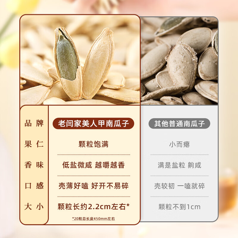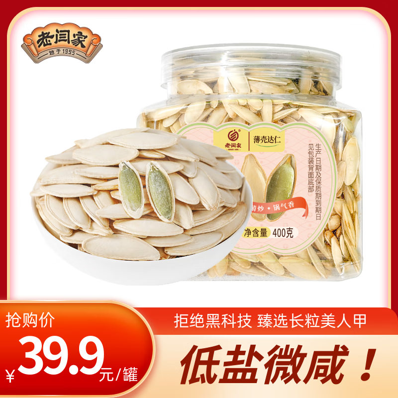 老闫家低盐美人甲南瓜子长粒大颗粒休闲零食坚果炒货盐焗南瓜籽400克/罐