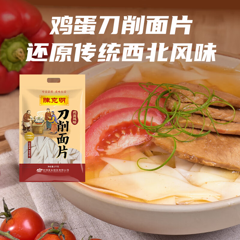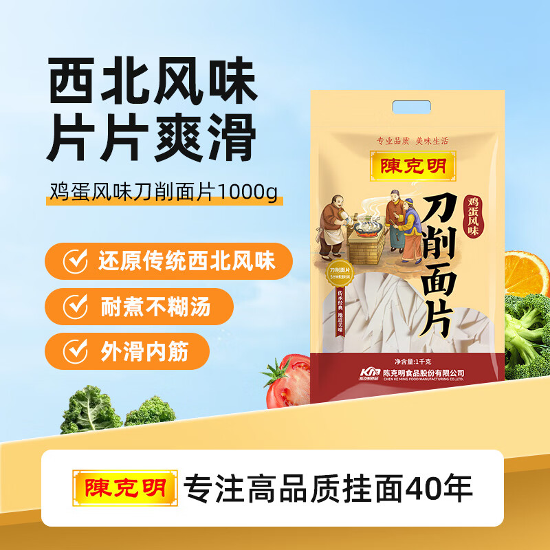 陈克明面条 鸡蛋风味刀削面片1000g 刀削面鸡蛋挂面烩面炸酱面火锅面