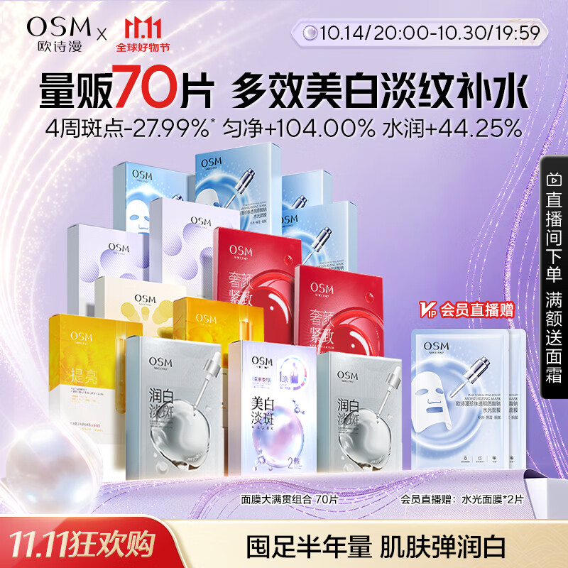 欧诗漫(OSM)面膜大满贯组合70片美白补水保湿舒缓提亮护肤品