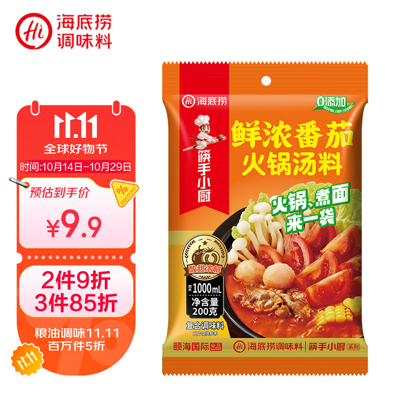 海底捞火锅底料 鲜浓番茄火锅汤料 200g 0添加 火锅煮面 酸甜 一料多用
