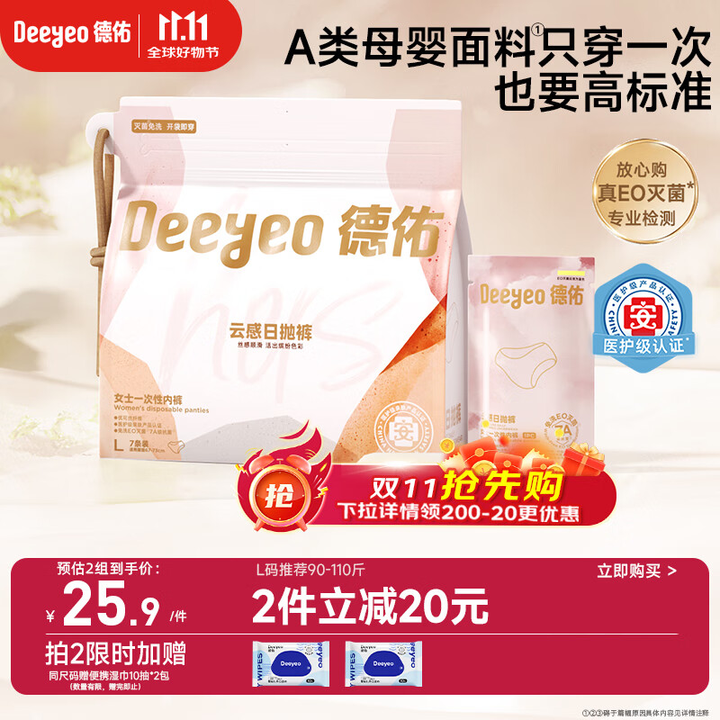 德佑一次性内裤女孕产妇坐月子出差便携生理期内裤7A抑菌L码7条/包