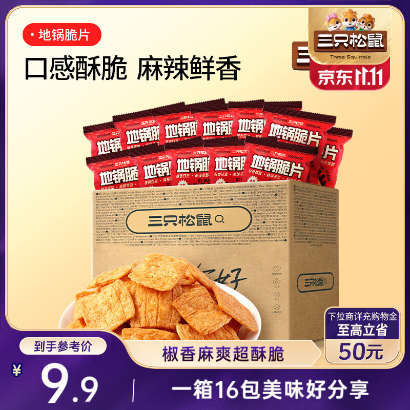 三只松鼠地锅脆片16包/箱 花椒锅巴解馋小吃休闲零食膨化办公室小吃288g