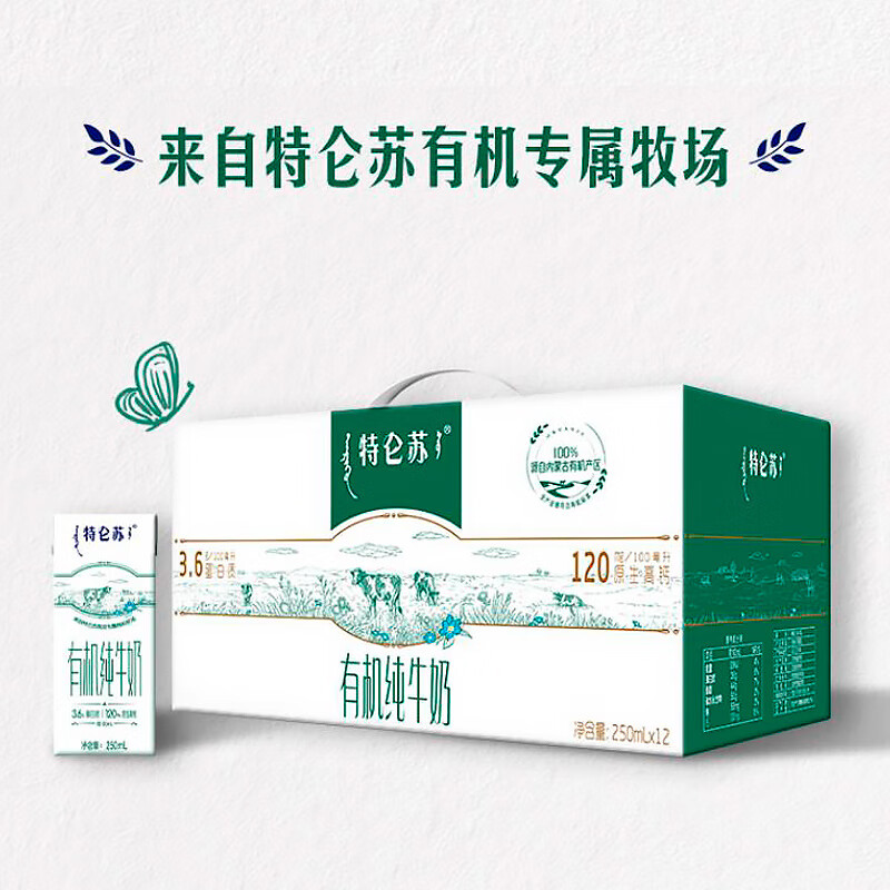 蒙牛特仑苏有机纯牛奶250mL*12盒 品质奶源 送礼盒装 电商定制