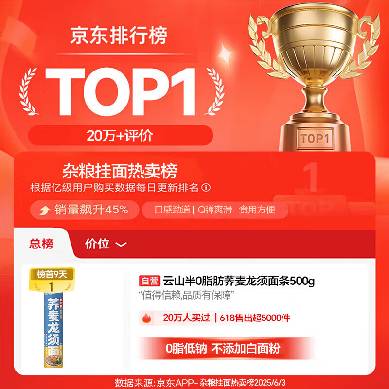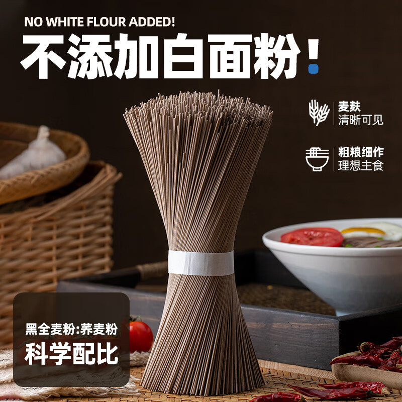 云山半0脂肪荞麦龙须面条500g低钠黑荞麦面100%细挂面汤面早餐拉面速食