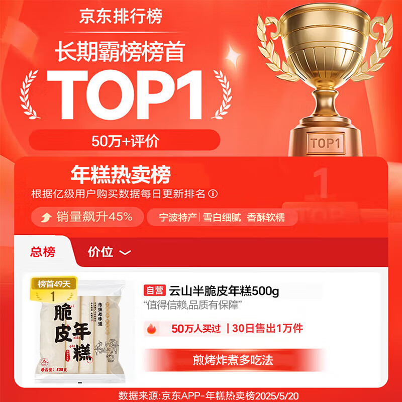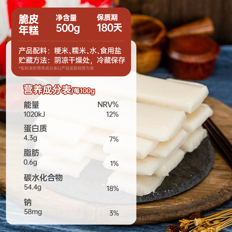 云山半 脆皮年糕500g 约6根 烧烤专用食材 宁波特产方便速食
