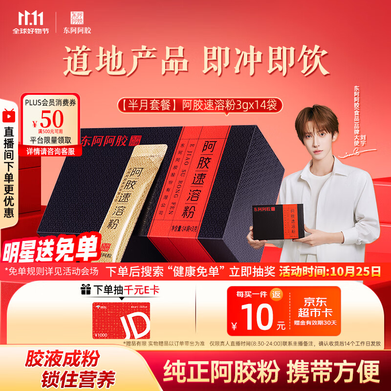 东阿阿胶小金条阿胶速溶粉3g*14袋易冲泡女性阿胶粉刘宇同款