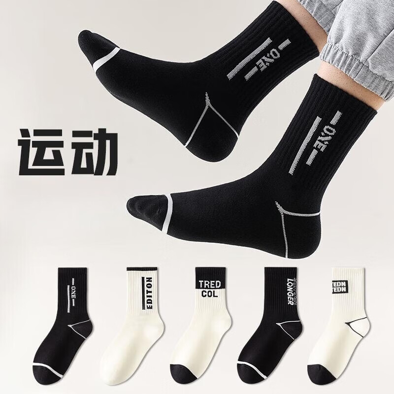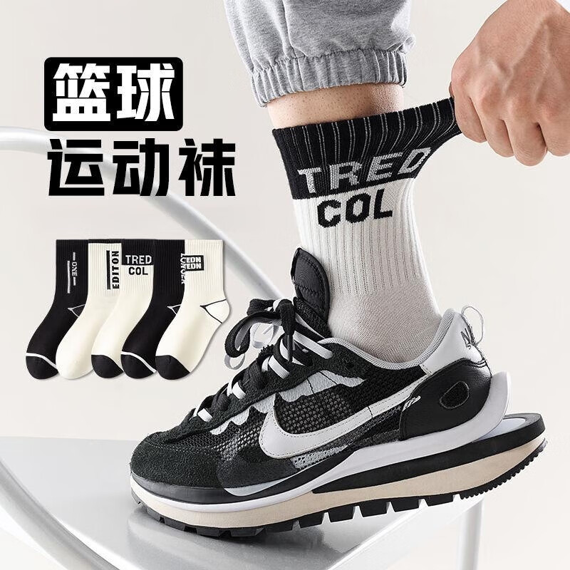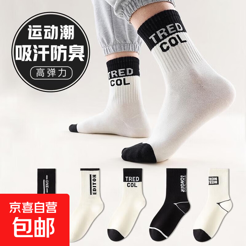 袜子男秋防臭吸汗时尚字母潮袜防滑篮球长筒运动袜子 试用专享 颜色随机 2双 均码