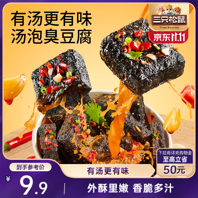 三只松鼠汤泡臭豆腐香辣味180g/9袋 零食追剧解馋办公室小吃臭干子豆腐