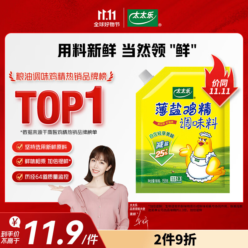 太太乐 薄盐鸡精 158g 减盐不减鲜 严选鸡肉 安心尝鲜