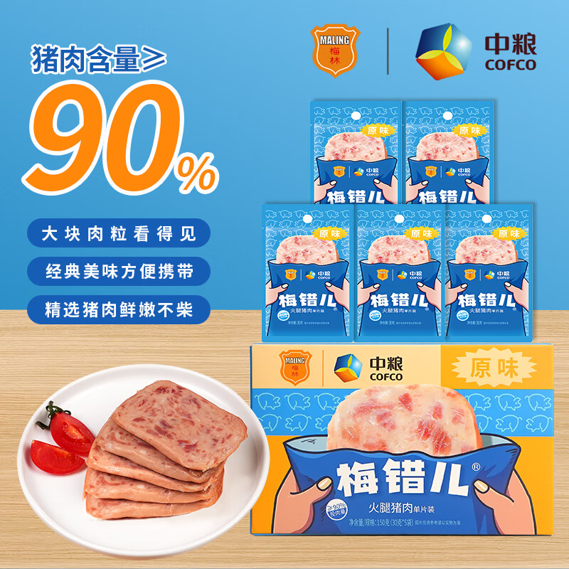 梅林火腿午餐肉 30g*5单片装一人开袋即食早餐烧烤火锅出行独立包装