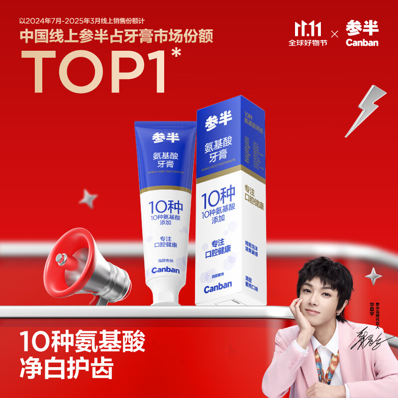 参半氨基酸洁白牙膏 去黄去牙渍去牙垢护齿益生菌蜜桃果香味120g