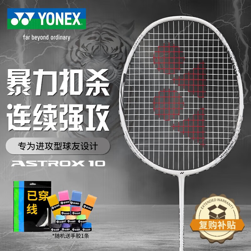 YONEX尤尼克斯羽毛球拍天斧进攻高磅全碳素进阶AX10白亮黑已穿线附手胶
